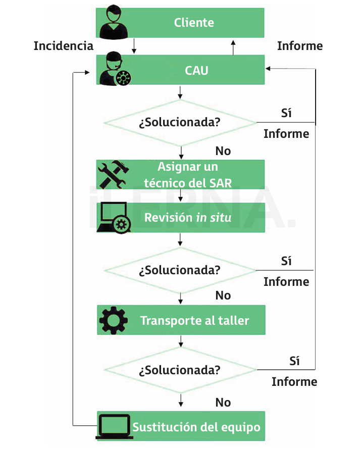 Toda empresa que en su Organigrama requiera de un técnico de montaje y mantenimiento de quipos necesita saber los motivos y soluciones de las averías para saber la vida útil de sus equipos y tener un control de averías y organización. El mantenimiento puede ser llevado a cabo por un trabajador propio o por una empresa externa. Si lo lleva una empresa externa: Deberá tener un CAU donde recibe todas las llamadas de los clientes y las incidencias Deberá tener un SAT que se encargue de la asistencia técnica