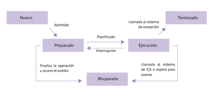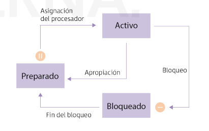 - Bloqueado: Ha sido interrumpido y está a la espera de que termine la operación que lo bloqueó