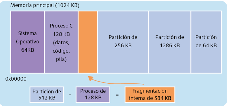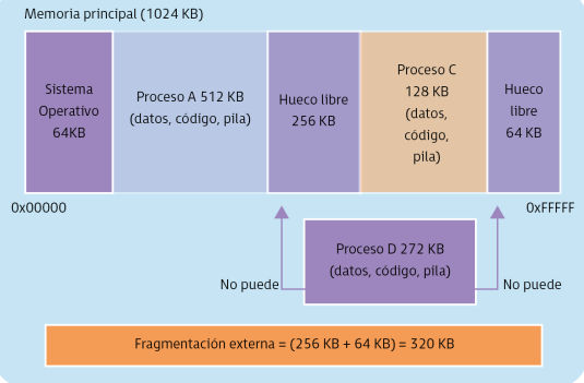 - Fragmentación Externa: Procesos ocupan espacio mayor y la partición queda libre