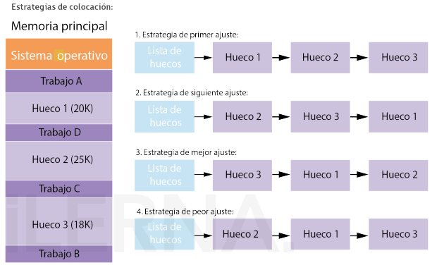 - Mejor Ajuste: asigna el hueco más pequeño al proceso que mejor se adapte al espacio