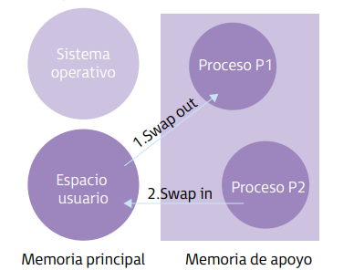 Swapping: Mueve el proceso de la memoria principal al disco duro y viceversa.